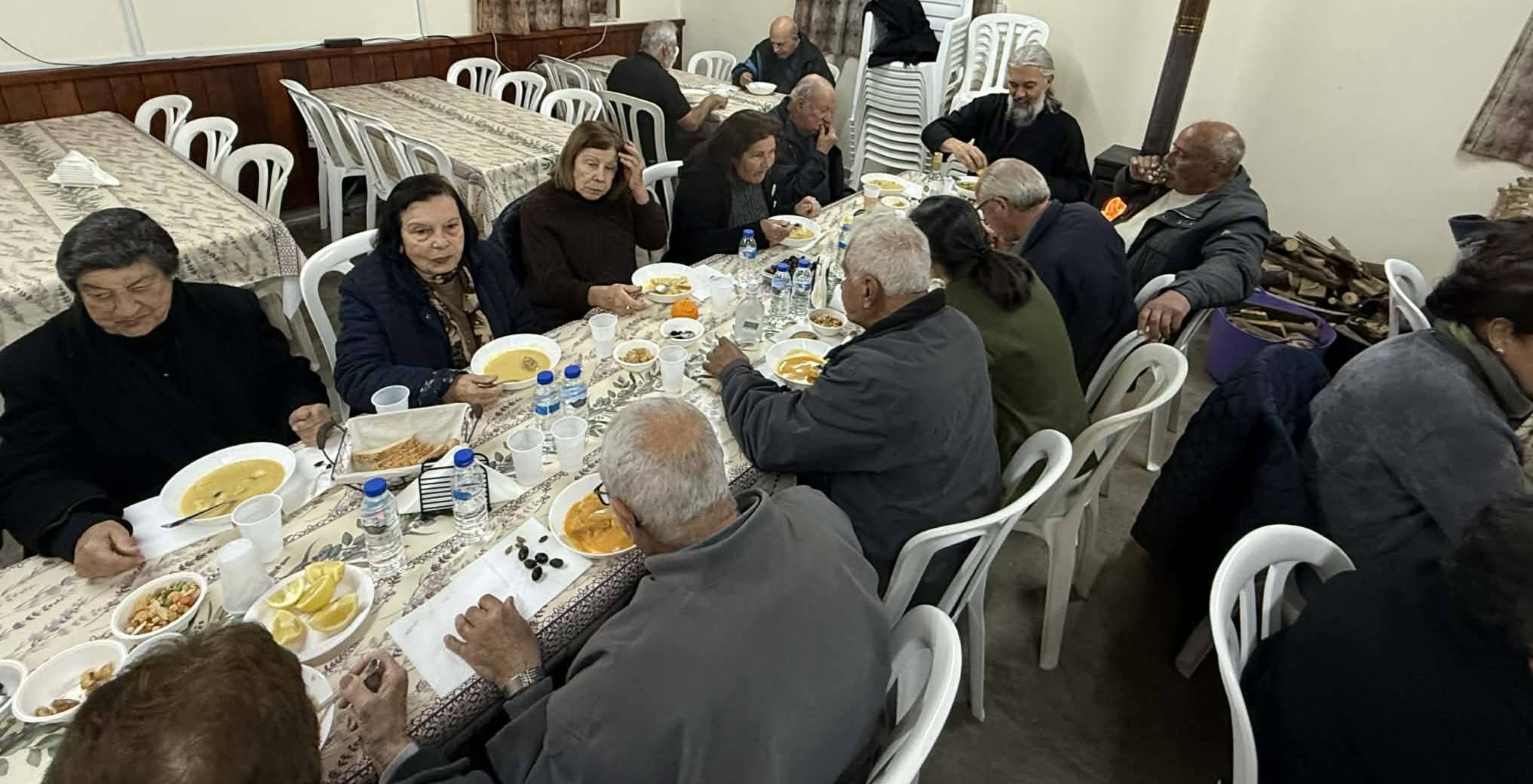 Πρώτοι Χαιρετισμοί χθες Παρασκευή και οι κάτοικοι των Κατυδάτων, μαζεύονται ως είθισται στο καθιερωμένο κοινό τραπέζι για σούπα στην ΠΑΕΚ, το σωματείου του χωριού.