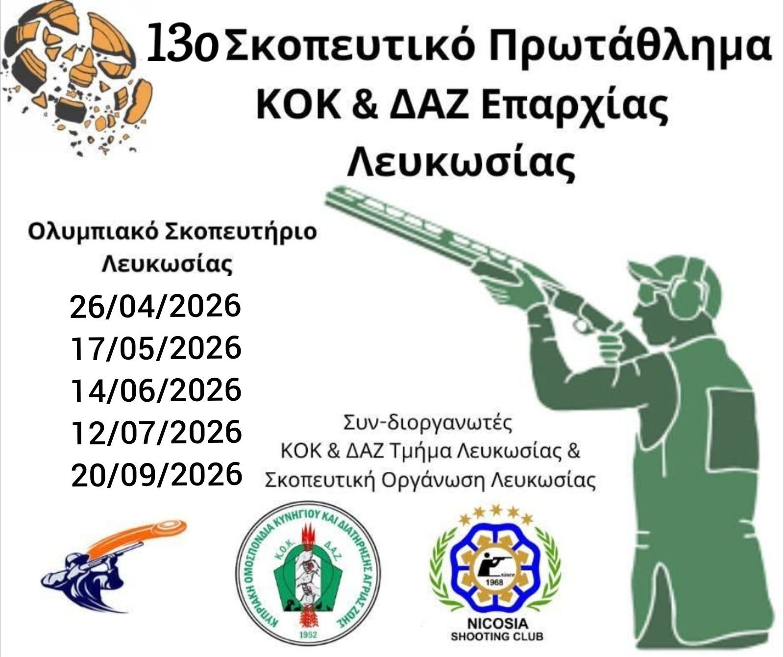 Νέα ανακοίνωση εξέδωσε η Κυπριακή Ομοσπονδία Κυνηγιού και Διαχείρισης Άγριας Ζωής της Επαρχίας Λευκωσίας, σε σχέση με το 13ο Σκοπευτικό Πρωτάθλημα.