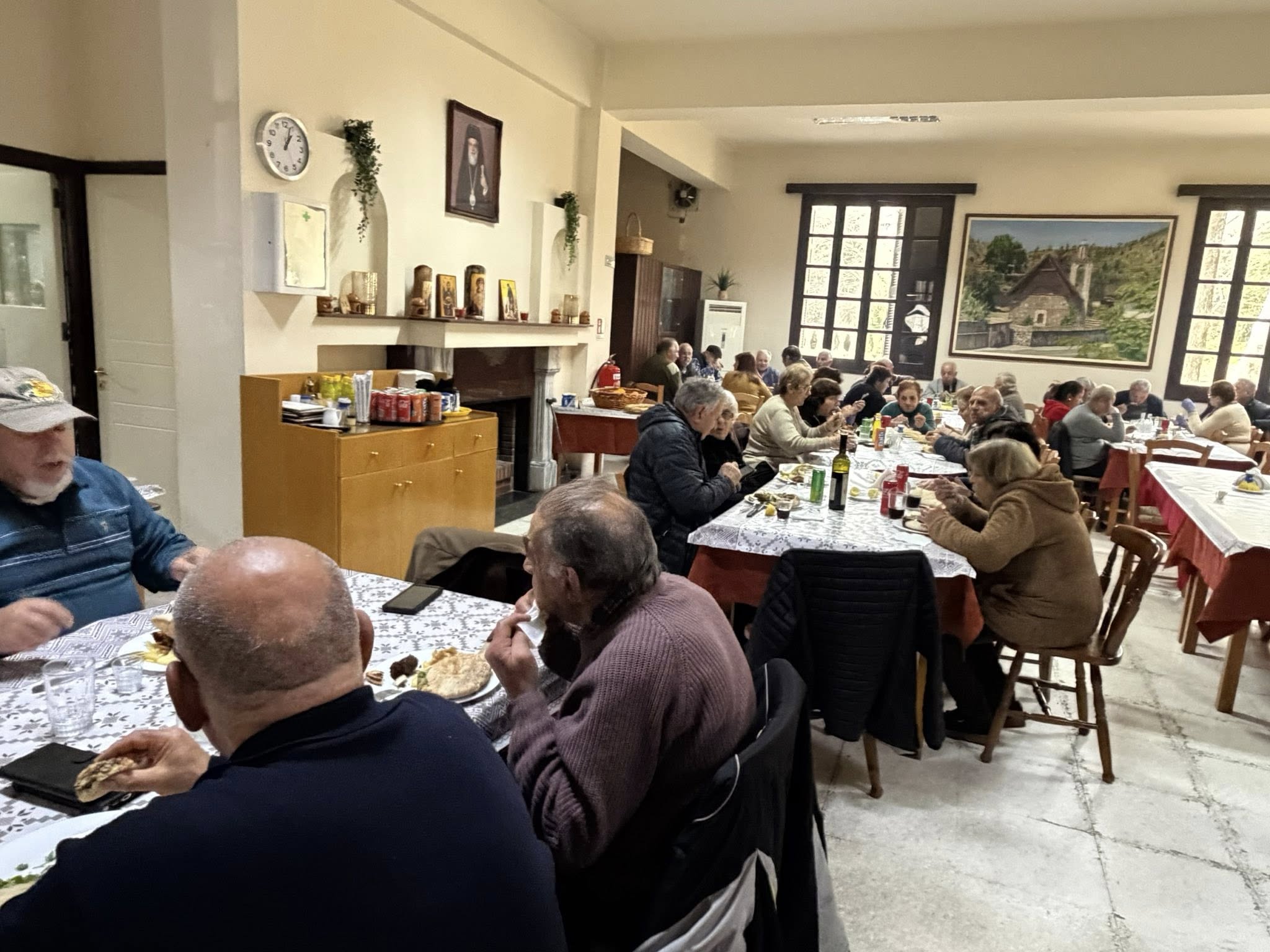 Μια και το χωριό μας είναι ένας ανοικτός οίκος ευγηρίας, στους ηλικιωμένους οι οποίοι δεν μπορούσαν να έλθουν στο καφεστιατοριο του χωριού, τους παραδόθηκε φαγητό και πουρέκια στο σπίτι (και προς τις οικιακές τους βοηθούς).