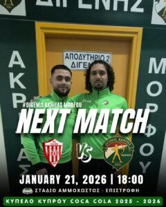 Σπουδαίο παιχνίδι για τη Β’ φάση του Κυπέλλου Κύπρου Coca Cola αύριο, 21 Ιανουαρίου, για το Διγενή Ακρίτα Μόρφου.
