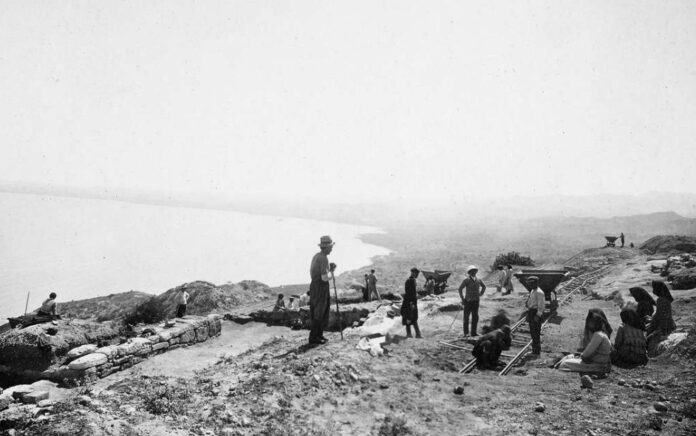 Στην ανάρτησή της η κ. Χαραλαλάμπους εξηγεί ότι “η παλιά αυτή φωτογραφία τραβήχτηκε κατά τη διάρκεια των πρώτων μεγάλων ανασκαφών, όταν η Σουηδική Αποστολή εργάστηκε στην περιοχή γύρω στο 1927–1931”.