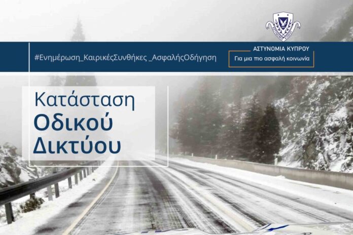 Λόγω χιονόπτωσης οι δρόμοι Καρβουνά – Τροόδους, Πλατρών – Τροόδους και Προδρόμου – Τροόδους είναι ανοικτοί ΜΟΝΟ για οχήματα εφοδιασμένα με αντιολισθητικές αλυσίδες ή /και κίνηση και στους τέσσερις τροχούς. Στην περιοχή του Τροόδους επικρατεί πυκνή ομίχλη και η ορατότητα είναι περιορισμένη.
