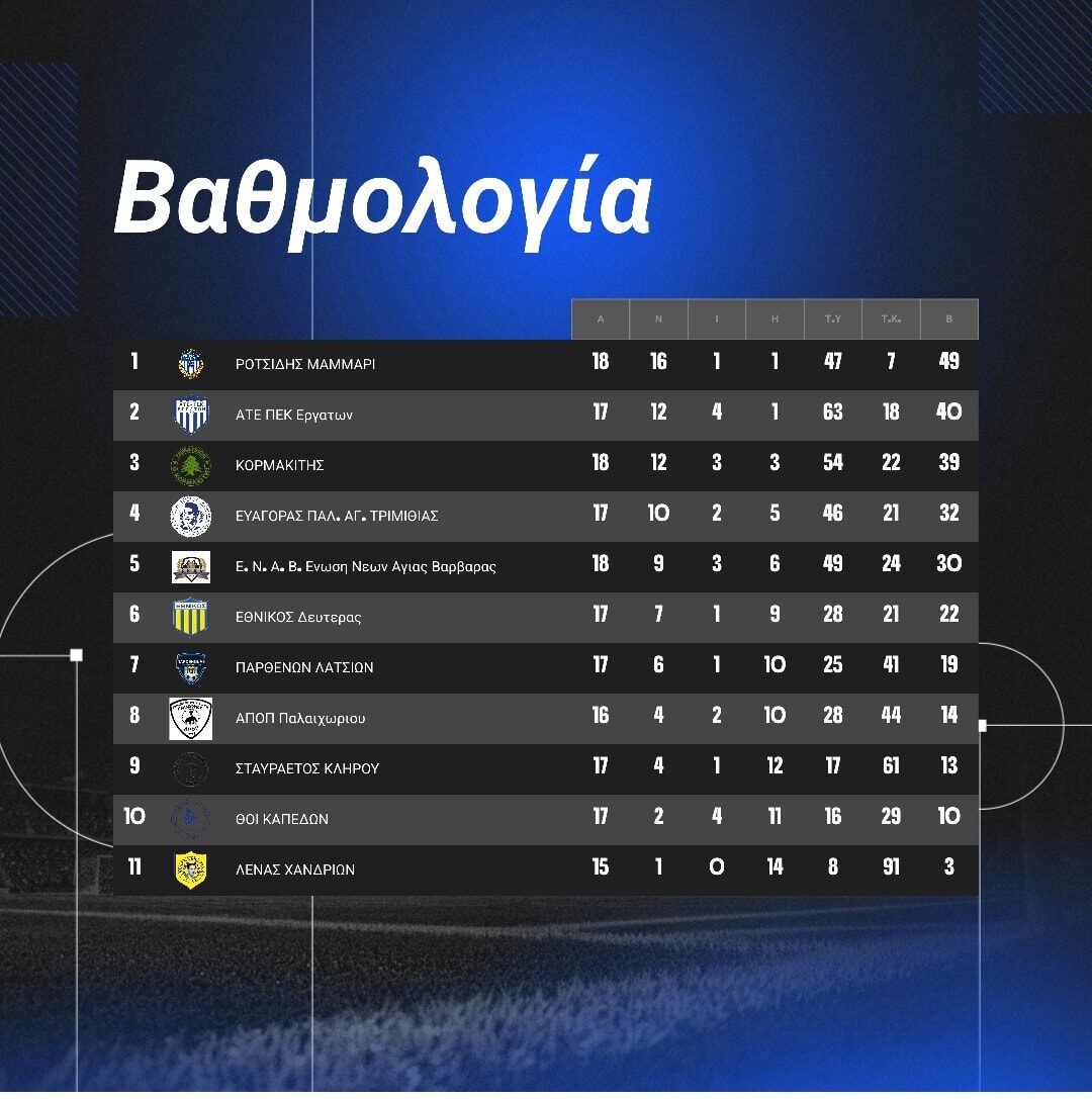Από την άλλη, η ομάδα του κοντινού χωριού των Αγίων Τριμιθιάς, συνεχίζει να δίνει τη δική της μάχη. Τρεις αγωνιστικές πριν το τέλος του Πρωταθλήματος βρίσκεται στην 4η θέση, 7 βαθμούς πίσω από την 3η ομάδα.