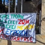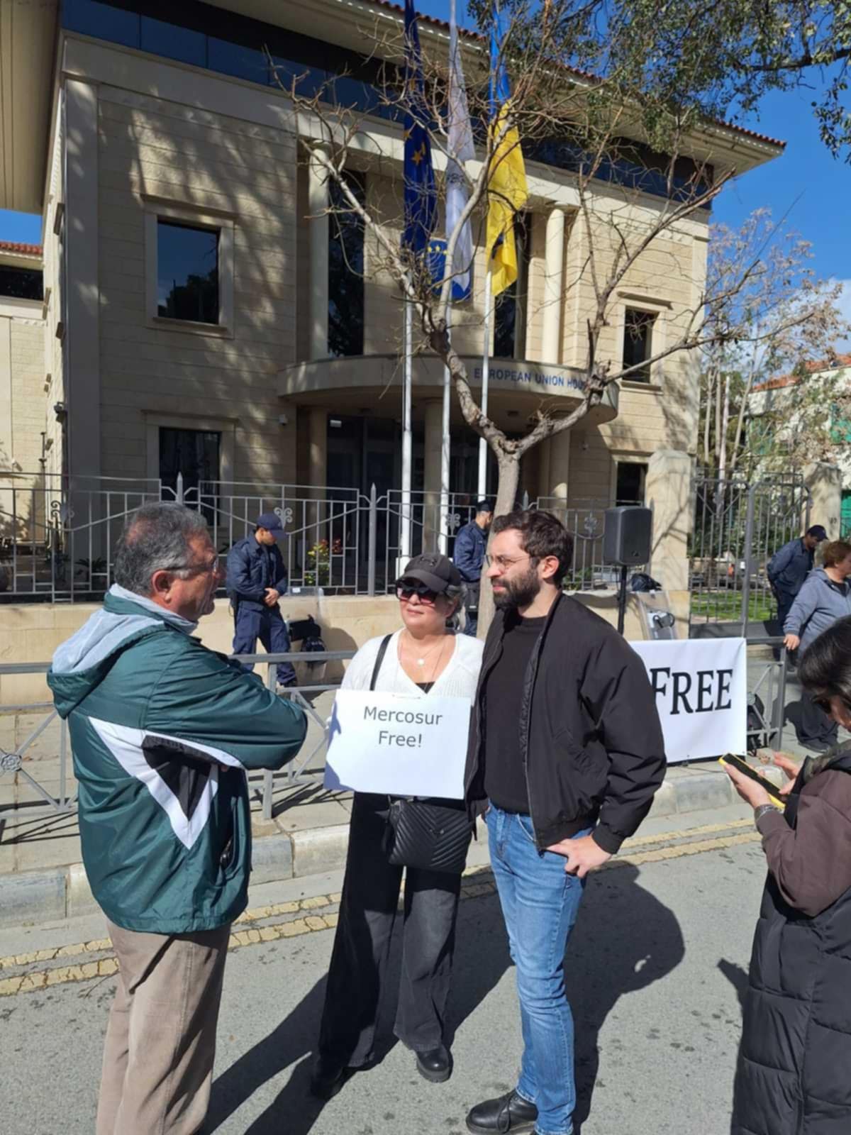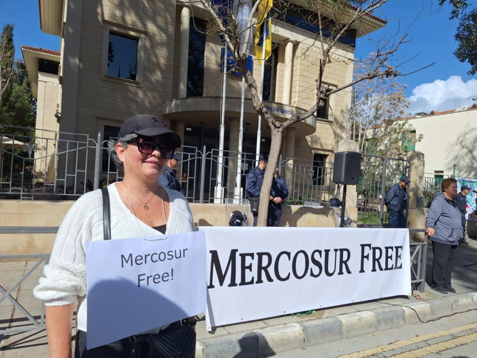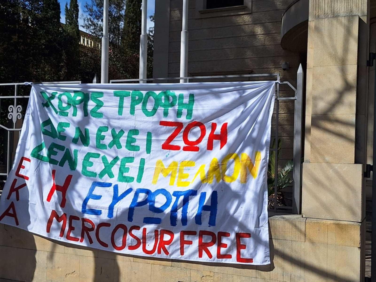 Εκδήλωση διαμαρτυρίας κατά της συμφωνίας της ΕΕ με τις χώρες της Mercosur (Βραζιλία, Αργεντινή, Ουραγουάη και Παραγουάη) πραγματοποίησαν το μεσημέρι του Σαββάτου έξω από το Σπίτι της Ευρώπης, στη Λευκωσία, αγροτικές οργανώσεις και άλλοι φορείς, οι οποίες παρέδωσαν ψήφισμα για να δοθεί στην Πρόεδρο της Ευρωπαϊκής Επιτροπής Ούρσουλα φον ντερ Λάιεν.