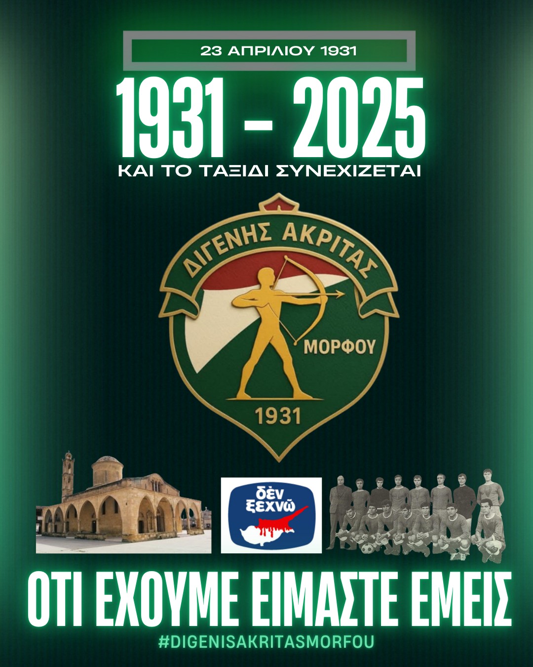 Ας ελπίσουμε για ακόμη μια φορά πως θα είναι τα τελευταία γενέθλια του Διγενή Ακρίτα Μόρφου μακριά από την αγαπημένη μας Μόρφου και πως αυτοί οι λίγοι που έμειναν τώρα κοντά στο Σωματείο να αντέξουν, γιατί είμαστε σίγουροι πως οι Μορφίτες θα αγκαλιάσουν ξανά την ομάδα τους! Δεν μπορεί να πιστέψει κανείς πως έπαψαν να νοιάζονται για τον Διγενή μας…
