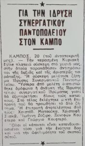 Παλιό δημοσίευμα που πάει πίσω στο 1952 αναφέρεται στην ίδρυση του Συνεργατικού Παντοπωλείου Κάμπου.