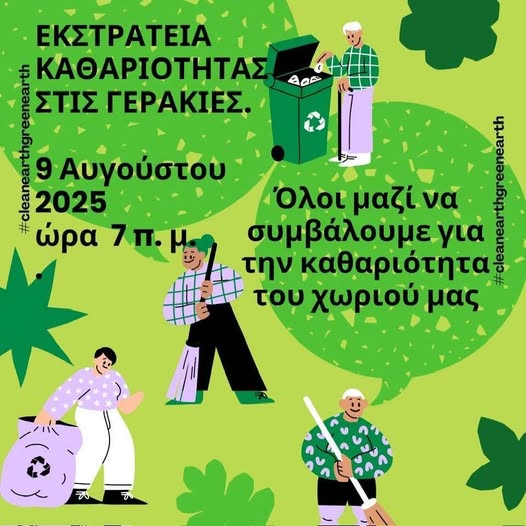 Διοργανώνεται εκστρατεία καθαριότητας στις Γερακιές – Όλες οι πληροφορίες July 4, 2025 ΕπικαιρότηταΔυτική ΛευκωσίαΜαραθάσα (Η’)ΤοπικάΚοινωνία Εκστρατεία καθαριότητας στην κοινότητα Γερακιές. Την εν λόγω δράση κοινοποίησε το Κοινοτικό Συμβούλιο, αναφέροντας ότι πρέπει όλοι μαζί να συμβάλλουν για την καθαριότητα του χωριού. 9 Αυγούστου 2025, ώρα 7 π.μ. ΗΜΕΡΟΛΟΓΙΟ ΕΚΔΗΛΩΣΕΩΝ ΤΕΛΕΥΤΑΙΕΣ ΕΝΗΜΕΡΩΣΕΙΣ Συλλήψεις για πληθώρα θεμάτων και πέραν των 500 ελέγχων παγκύπρια, ανακοίνωσε η Αστυνομία Αστυνομία Συστάσεις Πολιτικής Άμυνας για μέτρα αυτοπροστασίας από έντονα καιρικά φαινόμενα Επικαιρότητα Στο κόκκινο η σκόνη στην ατμόσφαιρα – Οι μετρήσεις σε Αγ. Μαρίνα Ξυλιάτου και Λευκωσία – Προσοχή στους δρόμους Δυτική Λευκωσία ΣΧΕΤΙΚΑ ΑΡΘΡΑ Συλλήψεις για πληθώρα θεμάτων και πέραν των 500 ελέγχων παγκύπρια, ανακοίνωσε η Αστυνομία Αστυνομία Λευκωσία: 16χρονος οδηγός προσέκρουσε σε μεταλλική περίφραξη – Άλλοι έξι ανήλικοι επιβάτες Αστυνομία Συστάσεις Πολιτικής Άμυνας για μέτρα αυτοπροστασίας από έντονα καιρικά φαινόμενα Επικαιρότητα Previous articleΈζησαν σαν ερευνητές στο Cern στη Γενεύη για τρεις μέρες, μαθητές του Λυκείου Παλαιομετόχου – ΦωτογραφίεςNext articleΜετά την αλλαγή Διεύθυνσης, η Ακαδημία Ποδοσφαίρου Δόξας Κατωκοπιάς συμπράττει με άλλες τέσσερεις γνωστές ακαδημίες