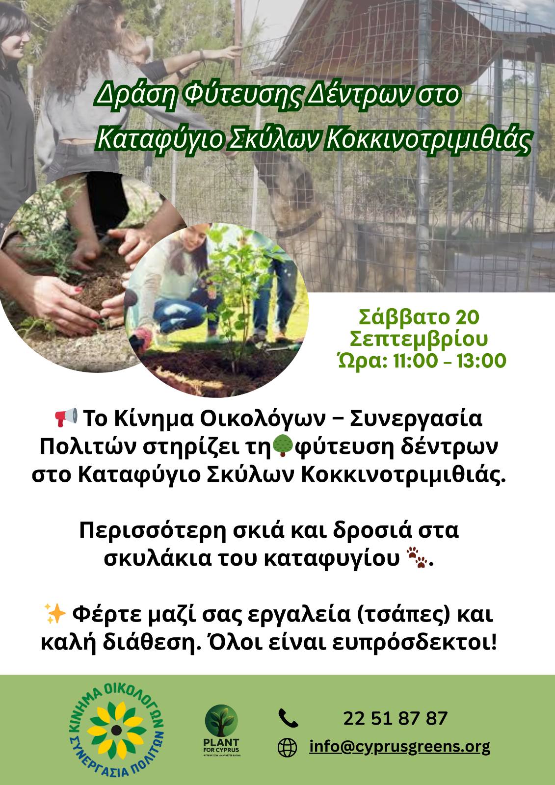 Το Κίνημα Οικολόγων – Συνεργασία Πολιτών στηρίζει τη φύτευση δέντρων στο Καταφύγιο Σκύλων Κοκκινοτριμιθιάς.
