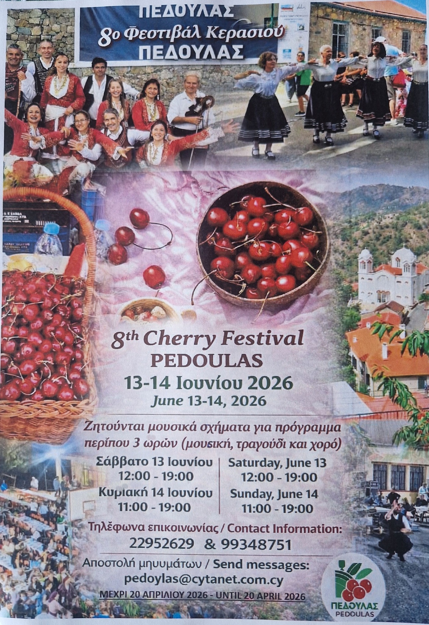 Όπως ήδη ανακοινώθηκε, έρχεται το 8ο Φεστιβάλ Κερασιού στον Πεδουλά, με το Κοινοτικό Συμβούλιο να ζητεί προσφορές από μουσικά σχήματα.