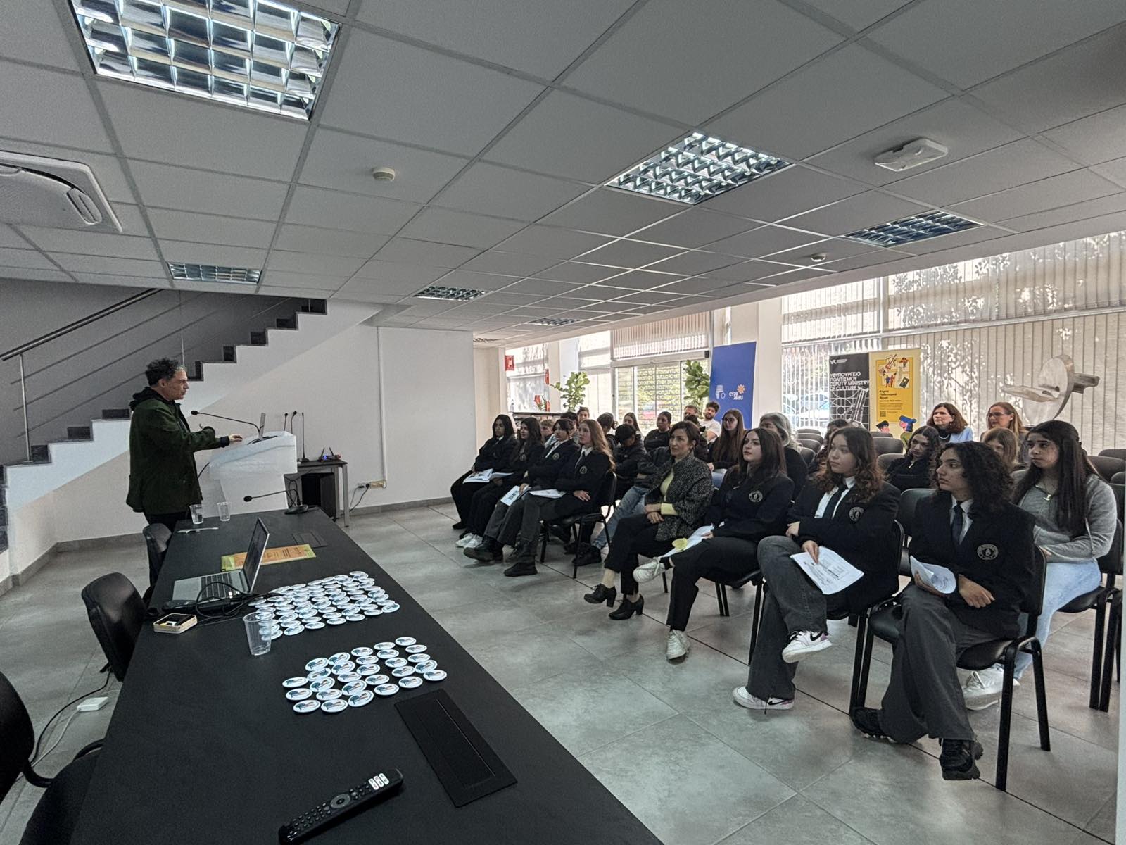 Τη Δευτέρα 16 Μαρτίου 2026, τα παιδιά του Λυκείου Σολέας που λαμβάνουν μέρος στο πρόγραμμα: «Σχολεία Πρεσβευτές Πολιτισμού – Παιδιά Πρεσβευτές Πολιτισμού», φιλοξενήθηκαν στο Υφυπουργείο Πολιτισμού, στην παρουσία της Υφυπουργού Πολιτισμού κ. Βασιλικής Κασσιανίδου, των καλλιτεχνών κ. Γιώργου Τσαγγάρη και Κυριάκου Καλλή και της υπεύθυνης λειτουργού του προγράμματος κ. Δέσποινας Ηρακλέους.