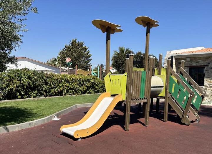 Το εστιατόριο έχει μια υπέροχη εξωτερική αυλή με γρασίδι, ενώ αποτελεί και ιδανική επιλογή για οικογένειες με παιδιά, καθώς έχει και παιχνιδότοπο.