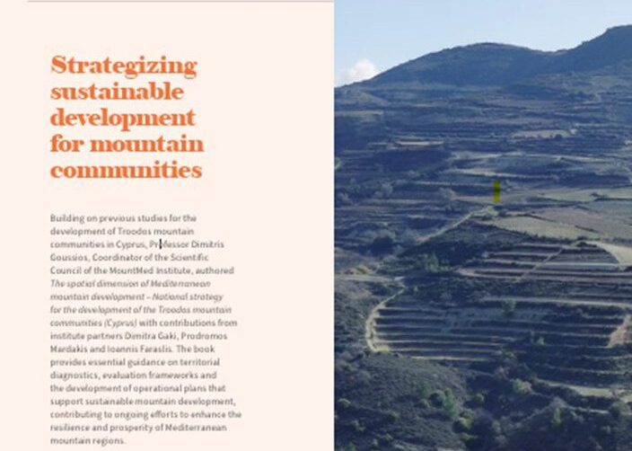 Το βιβλίο, με συγγραφέα τον Καθ. Δημήτρη Γούσιο, Συντονιστή του Επιστημονικού Συμβουλίου του MountMed, και με συνεισφορές των συνεργατών του Ινστιτούτου, Δήμητρας Γάκη, Πρόδρομου Μαρδάκη και Ιωάννη Φαράσλη, βασίζεται στη μελέτη για την ανάπτυξη των ορεινών κοινοτήτων της Κύπρου. Η μελέτη διεξήχθη την περίοδο 2017-2019 από το Εργαστήριο Αγροτικού Χώρου του Τμήματος Μηχανικών Χωροταξίας, Πολεοδομίας και Περιφερειακής Ανάπτυξης της Πολυτεχνικής Σχολής του Πανεπιστημίου Θεσσαλίας, με δωρεά του Ιδρύματος Γιαννάκη Παπαδούρη. Πρόκειται για μια ολοκληρωμένη εργασία, η οποία περιλαμβάνει: τη διάγνωση της περιοχής, τη στρατηγική και το επιχειρησιακό σχέδιο, εξειδικευμένο σε σχέδια δράσης.