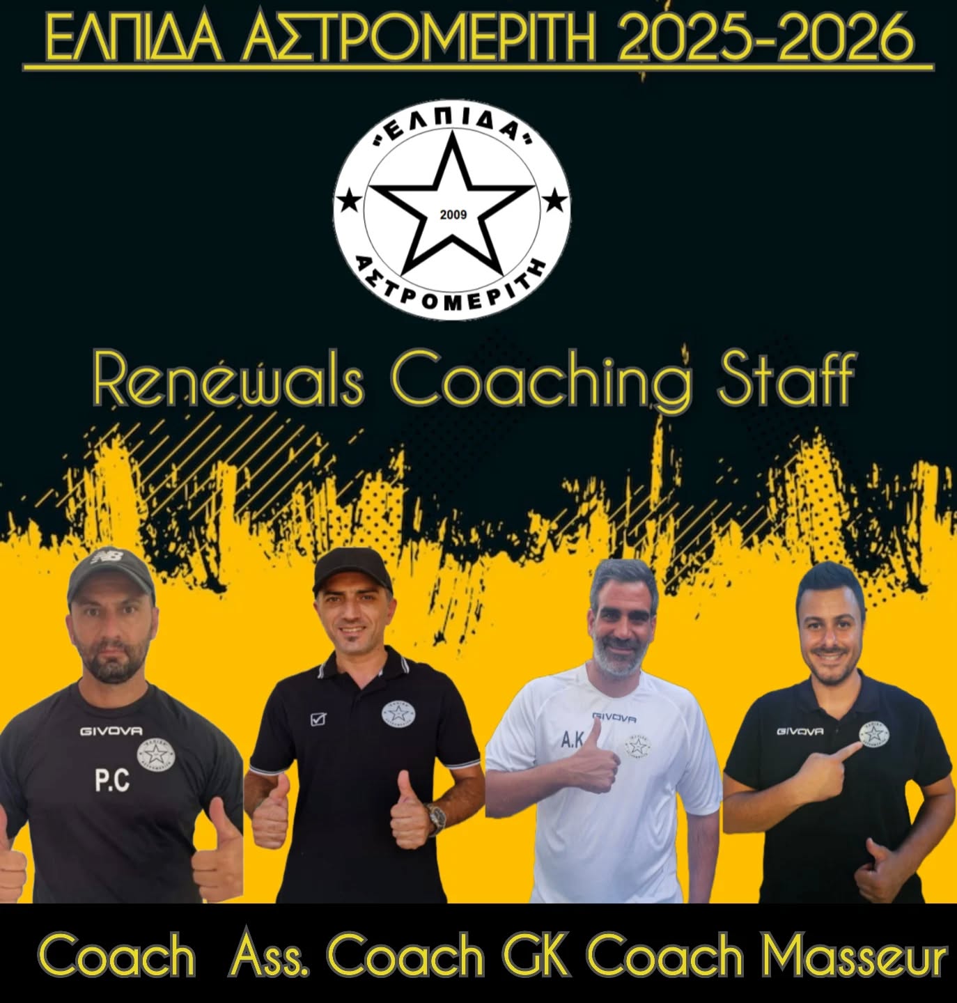 Σε φάση δυναμικού προγραμματισμού βρίσκεται η Ελπίδα Αστρομερίτη, η οποία ανακοίνωσε την ανανέωση της συνεργασίας με το προπονητικό της επιτελείο, ενόψει της νέας ποδοσφαιρικής περιόδου.
