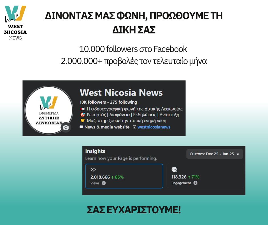 Με την επισκέψιμότητα που έχει η διαδικτυακή εφημερίδα wnn.cy και τα Μέσα Κοινωνικής Δικτύωσης που διαθέτει, δεν είμαστε απλώς μια σελίδα, αλλά κόμβος πληροφόρησης για τη Δυτική Λευκωσία. Εξάλλου, όλοι οι μεγάλοι ειδησεογραφικοί όμιλοι, ξέρουν πλέον τι να διαβάσουν ή που να αποταθούν, όταν κάτι απασχολεί το παγκύπριο από την περιοχή μας. Ενώ, οι παρεμβάσεις μας σε κανάλια Παγκύπριας εμβέλειας, όπως το Sigma και το Βεργίνα, δίνουν επιπρόσθετη ώθηση και προβολή.