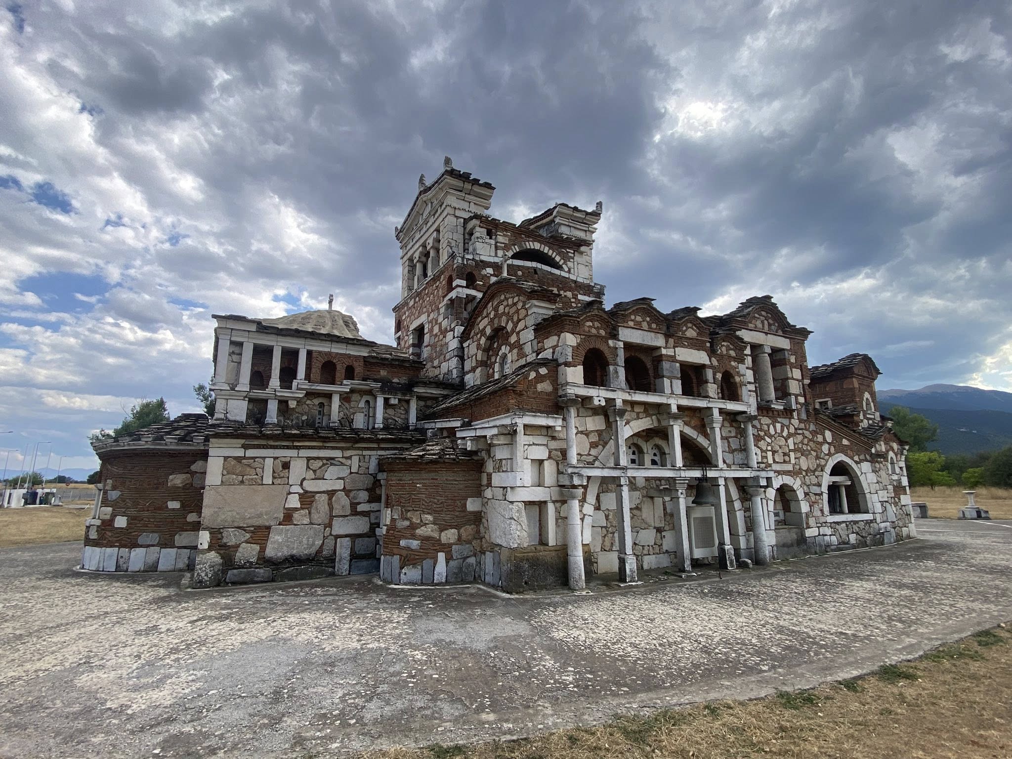 Συνδυάζει στοιχεία από βυζαντινή, αρχαία ελληνική και λαϊκή αρχιτεκτονική, αλλά με έναν ιδιότυπο, σχεδόν «φαντασιακό» τρόπο.