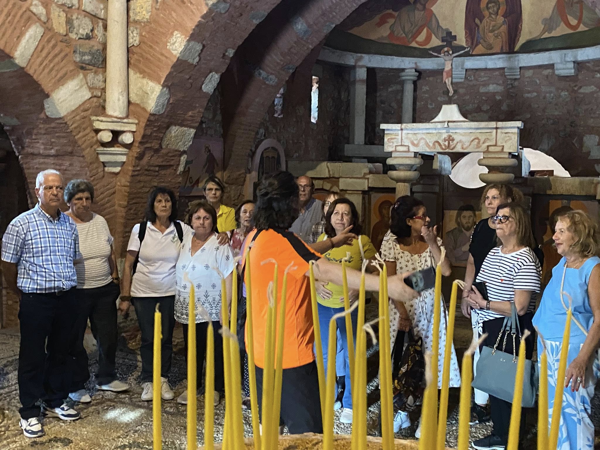Η δεύτερη στάση έγινε στον ιδιόμορφο ναό της Αγίας Φωτεινής στην Μαντινεία, ο οποίος χτίστηκε το 1970-1973.