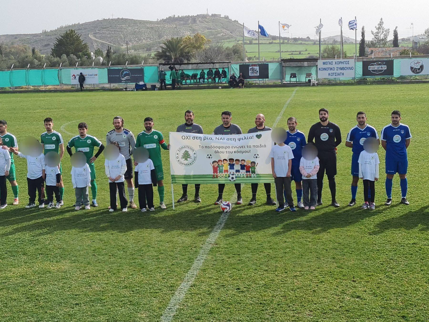 Το Σωματείο Ο Κορμακίτης, στο σημερινό ντέρμπι απέναντι στο Σωματείο Ροτσίδης Μαμμάρι, το οποίο διεξήχθη στο Γήπεδο του Κέδρου Αγίας Μαρίνας στον Κοτσιάτη, έστειλε πριν την έναρξη του αγώνα ένα ξεκάθαρο και ηχηρό μήνυμα κατά της παιδικής βίας, με σύνθημα: