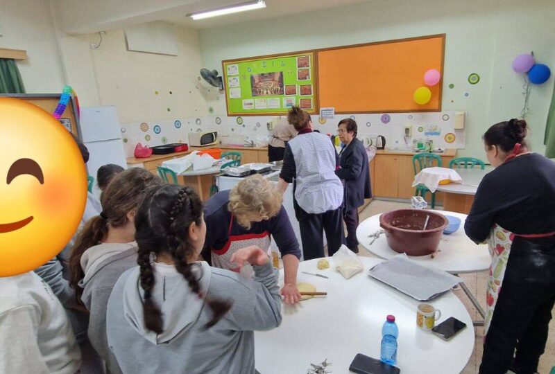 Εκπαιδευτικό προσωπικό και μέλη του συνδέσμου, με συνοδεια απο παραδοσιακά τραγούδια από τα παιδιά, σήκωσαν μανίκια, ανοιξαν φύλλο, έψησαν και κέρασαν ολο το σχολείο.