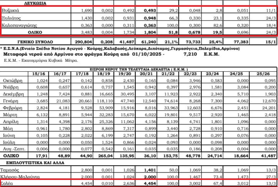 Παρά τη σχετικά καλή συγκομιδή νερού που καταγράφηκε κατά τον Φεβρουάριο, η κατάσταση παραμένει δύσκολη, όπως σημείωσε, καθώς τα συνολικά αποθέματα εξακολουθούν να βρίσκονται σε χαμηλά επίπεδα.
