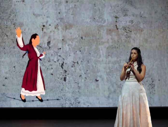 Στη φωτογραφία η Έλλη απεικονίζεται να παίζει ένα πνευστό όργανο, καθώς τα πνευστά είναι και η ειδικότητά της.