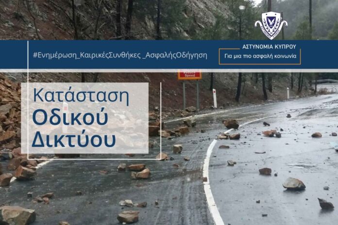 Λόγω των έντονων βροχοπτώσεων που σημειώθηκαν κατά την διάρκεια της ημέρας, προκλήθηκαν κατολισθήσεις πετρών και χώματος στους ακόλουθους δρόμους, η πλεοιοψηφία εκ των οποίων βρίσκεται στη Δυτική Λευκωσία.