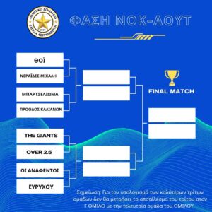 Μετά την ολοκλήρωση των ομίλων της πρώτης μέρας του τουρνουά της ΕΛΠΙΔΑΣ ΑΣΤΡΟΜΕΡΙΤΗ προκρίθηκαν 8 ομάδες, οι οποίες θα αναμετρηθούν σήμερα σε νοκ άουτ αγώνες ως ακολούθως: