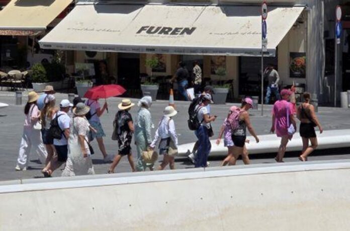 Σήμερα Τρίτη η θερμοκρασία είναι κοντά στους 43 στο εσωτερικό, θερμοκρασία για την οποία εκδόθηκε πορτοκαλί προειδοποίηση.