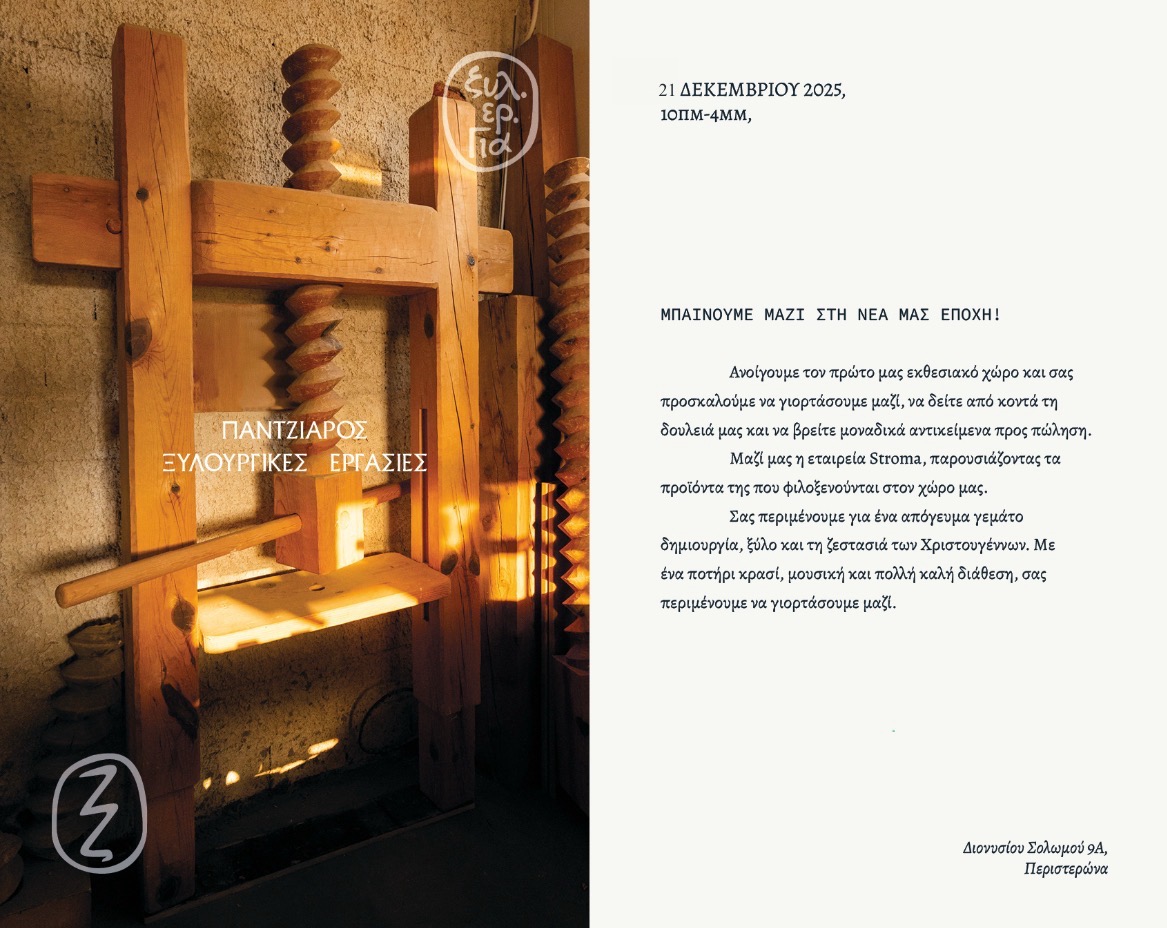 Η εταιρεία σας προσκαλεί να επισκεφθείτε τον πρώτο εκθεσιακό χώρο της και να γιορτάσετε μαζί, να δείτε από κοντά τη δουλειά που γίνεται και να βρείτε μοναδικά αντικείμενα προς πώληση.