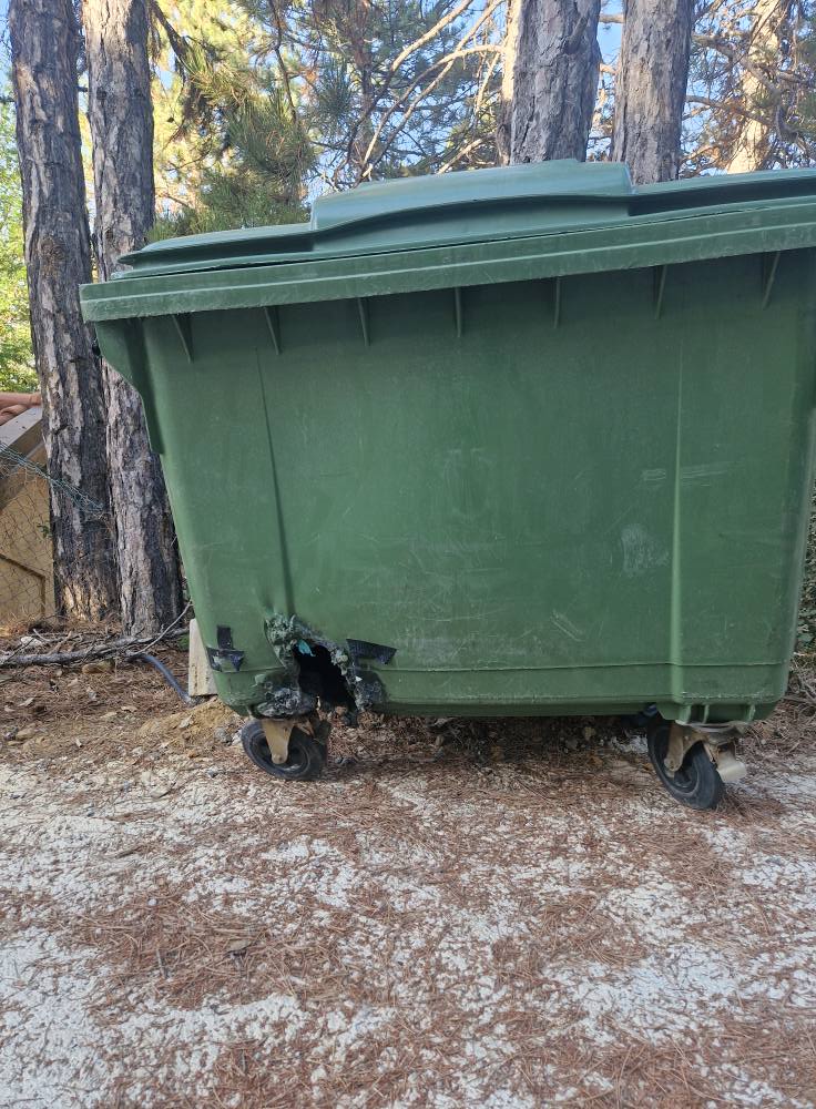 Σήμερα, στην περιοχή του χορού μέσα στο δάσος, κάποιος άλλος ανεγκέφαλος έριξε ξανά αναμμένα κάρβουνα μέσα σε καλάθι, με αποτέλεσμα ο κάδος από τη θέρμη να καταστραφεί.