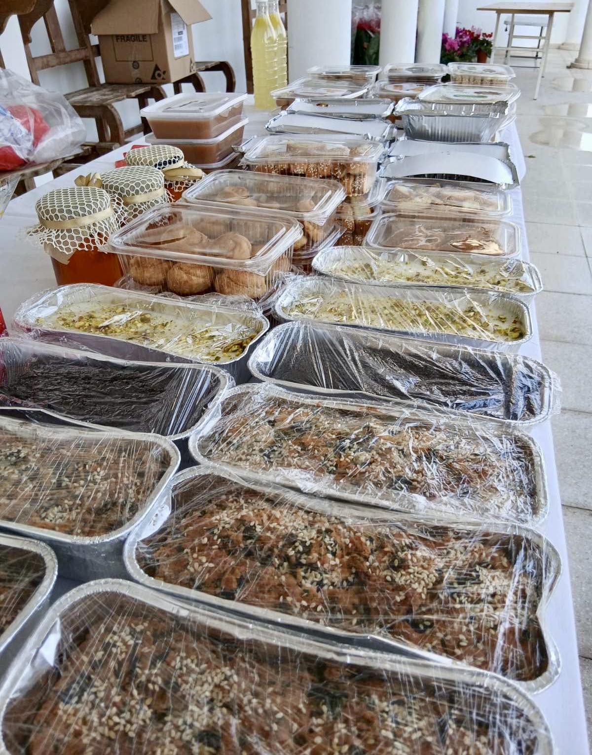 Στο προαύλιο της εκκλησίας, οι γυναίκες του χωριού ετοίμασαν χειροποίητα εδέσματα, ενώ διατίθονταν και λουλούδια, με όλα τα έσοδα να προσφέρονται για την οικονομική ενίσχυση του ναού μας.
