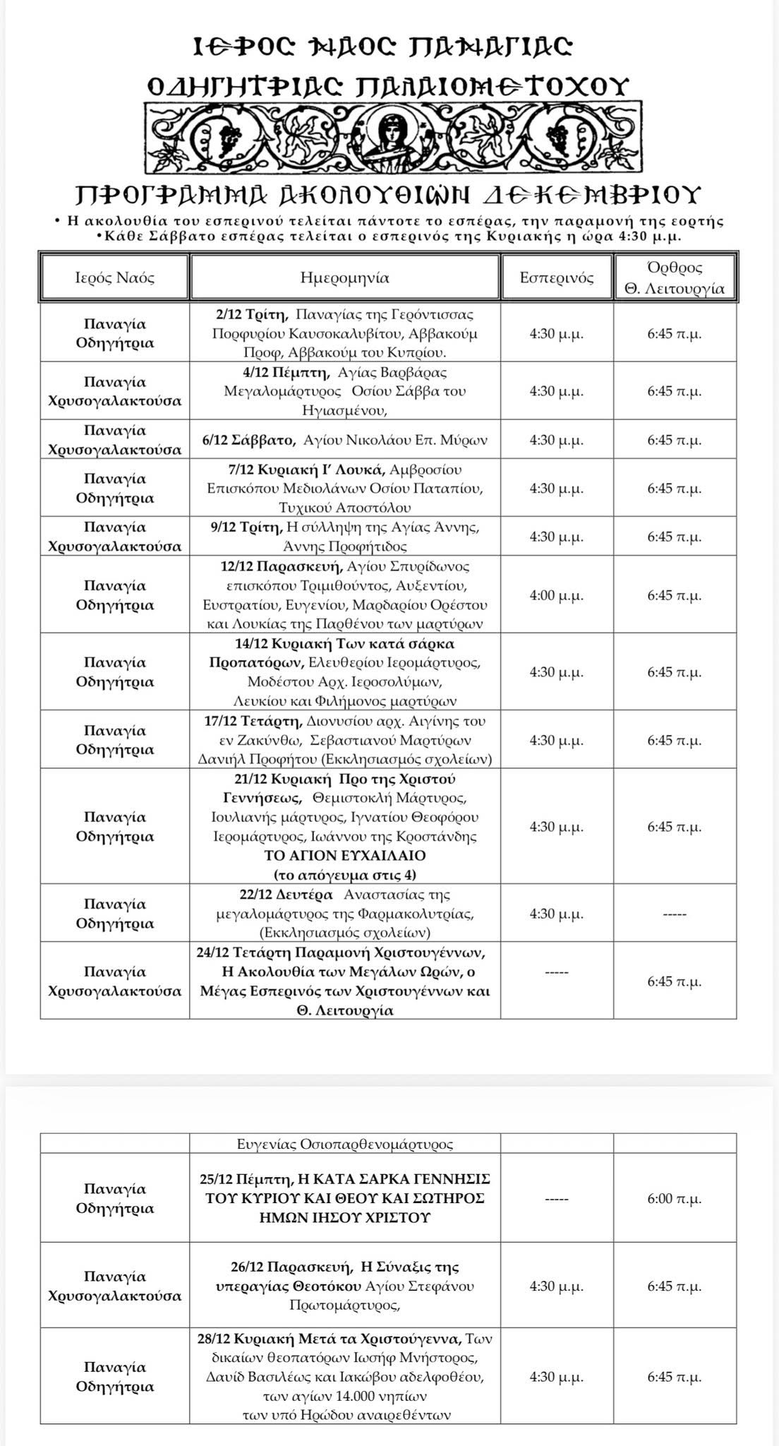 Η Εκκλησία ανάρτησε και το πρόγραμμα των Ιερών Ακολουθιών για τον μήνα Δεκέμβριο: