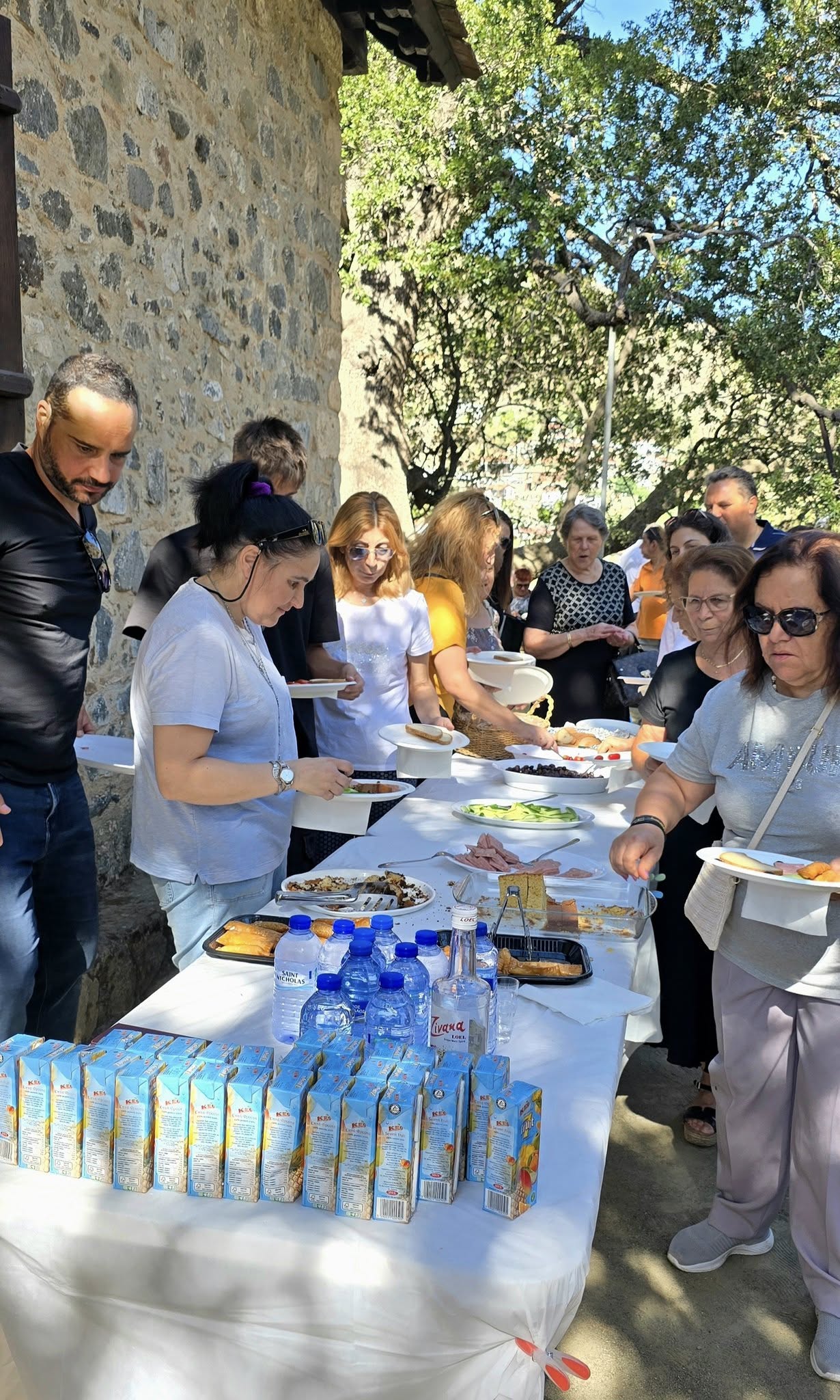 Παράλληλα, προσφέρθηκε πρόγευμα στους πιστούς από τον Σύνδεσμο Αποδήμων Καλοπαναγιώτη, γιορτή του Αγίου Μαντηλίου.