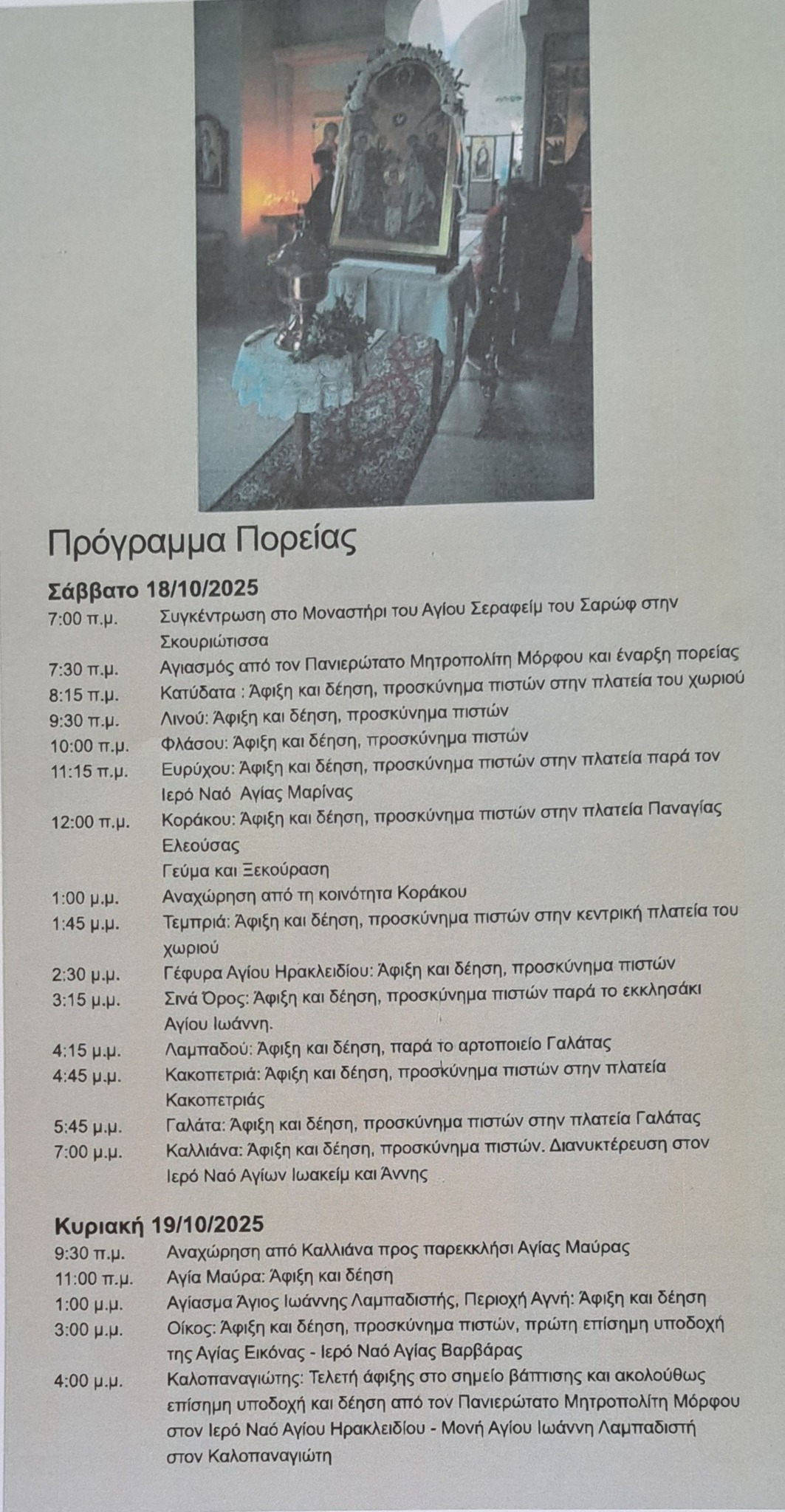 Ανακοινώθηκε το πρόγραμμα της 10ης Πορείας Λιτανίας των Αγίων Αποστολών που θα πραγματοποιηθεί στις 18 και 19 Οκτωβρίου.