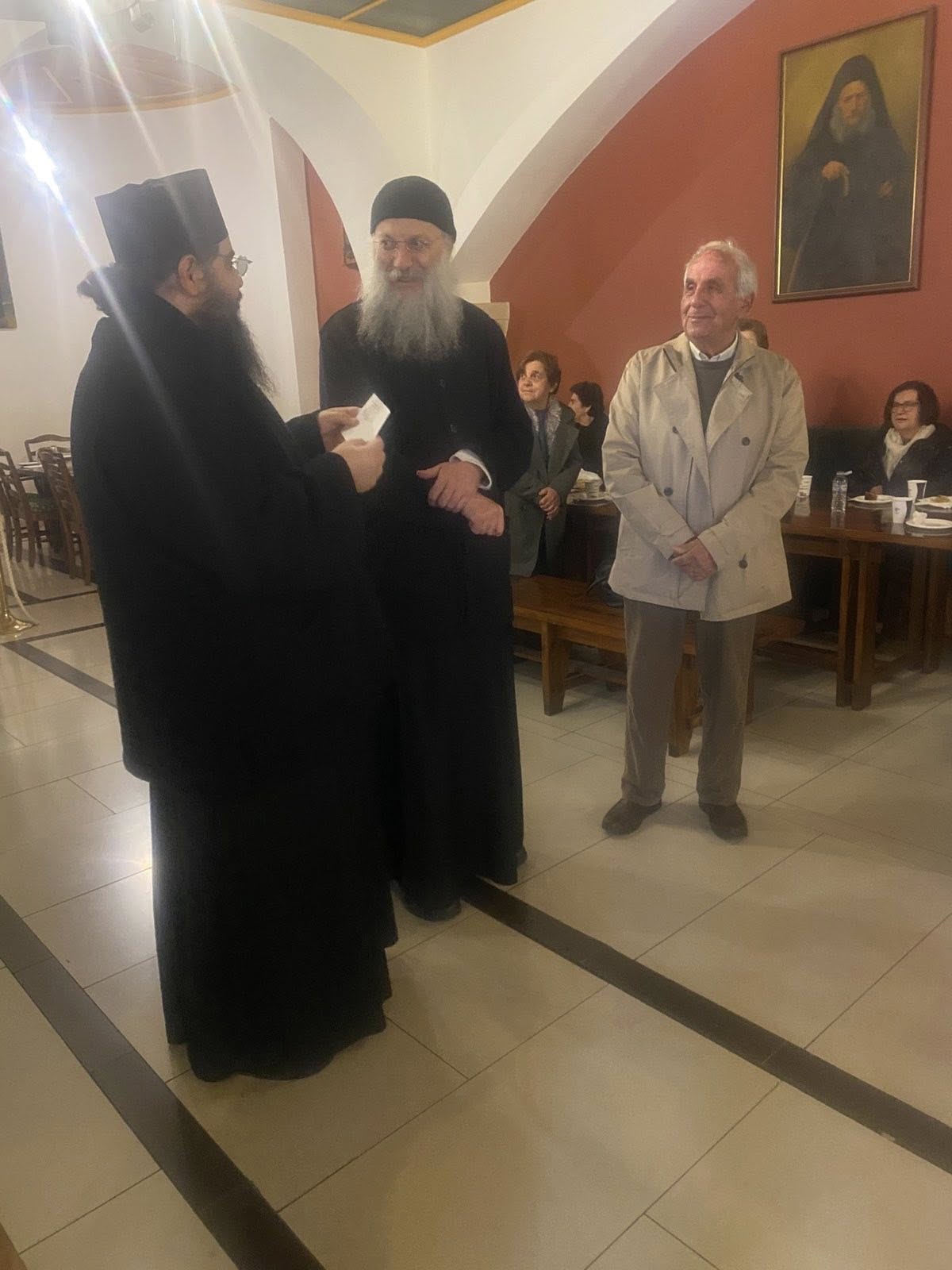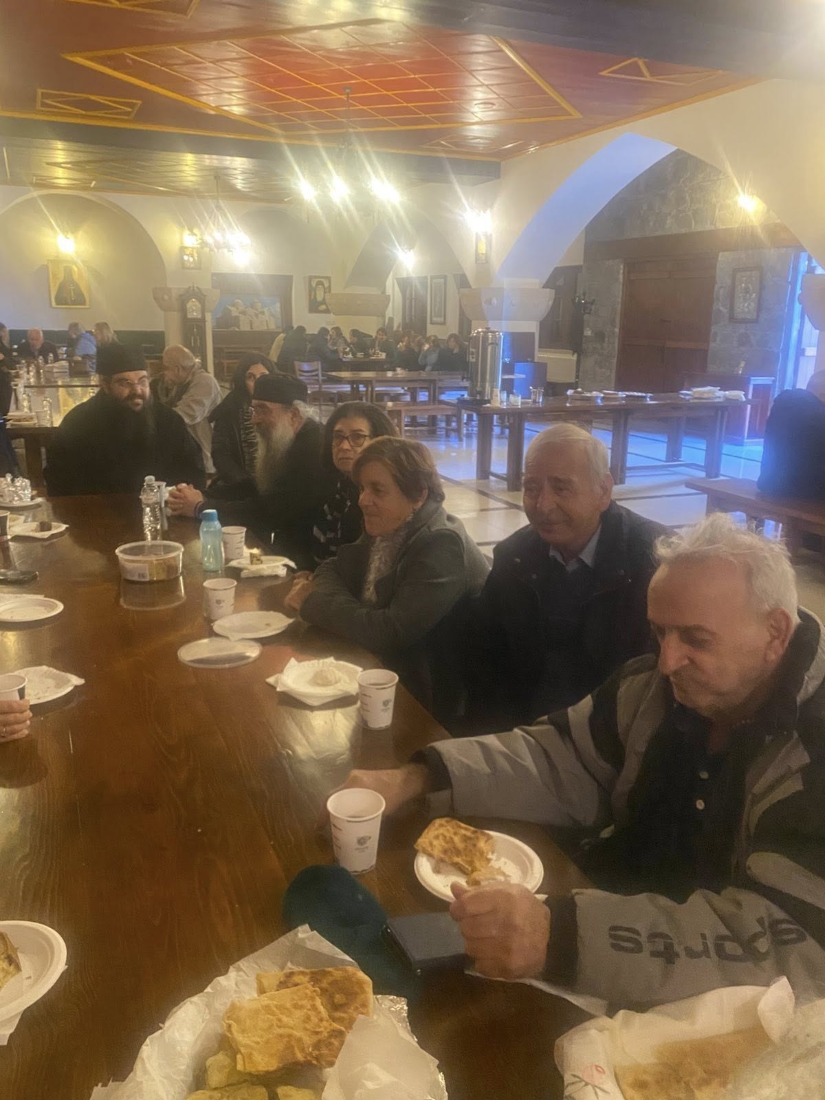 Όπως αναφέρεται στη σχετική ανακοίνωση, “αφού τελέσαμε την παράκληση προς την Παναγία μας για να σκέπει την κοινοτητα μας, οι Πατέρες της Μονής μας φιλοξένησαν και ο γέροντας μας απηύθυνε πνευματικούς λόγους. Τέλος παραδώσαμε τον ετήσιο έρανο (ζήτεια)”.