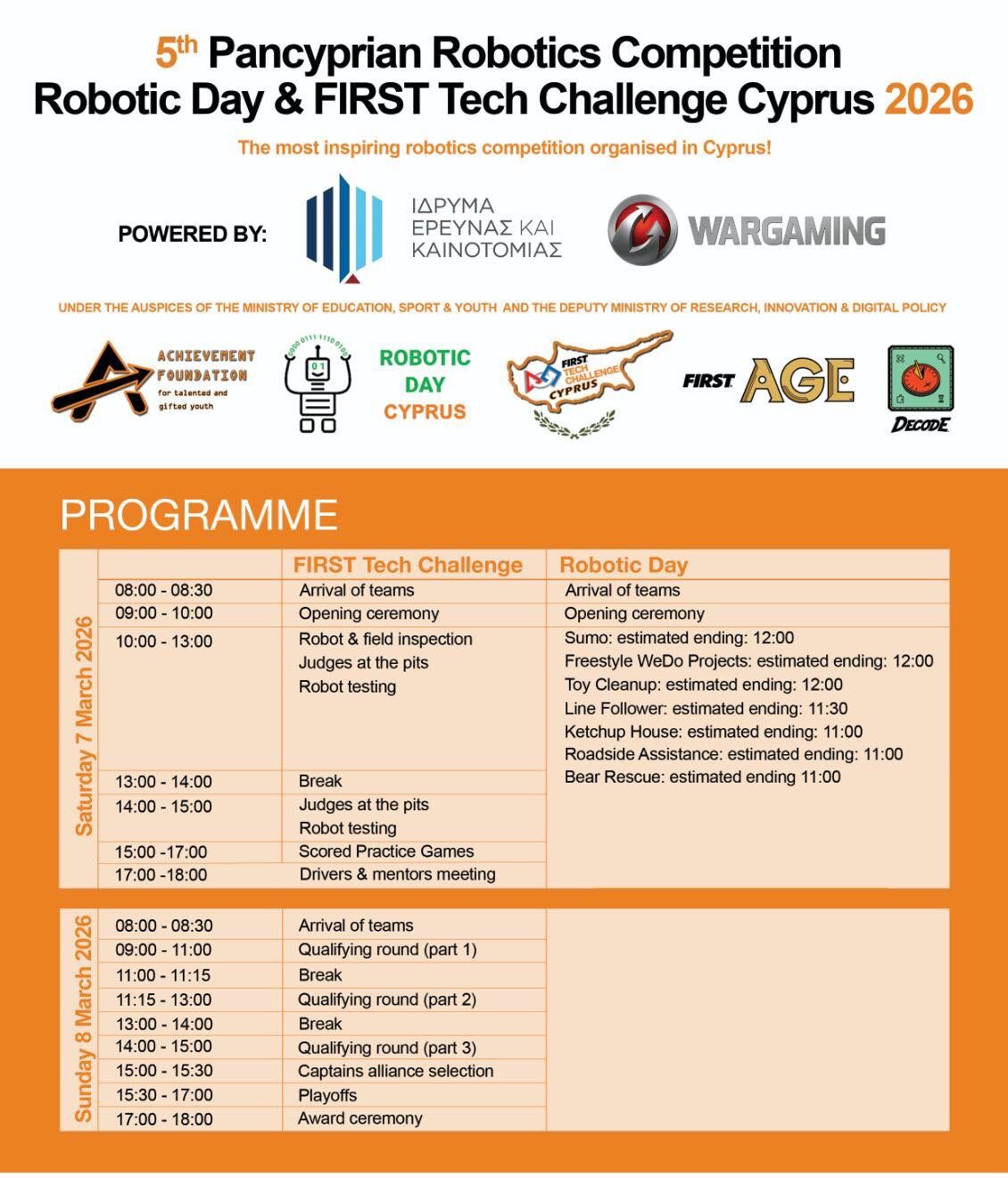 Σας περιμένουμε για να υποστηρίξετε τα παιδιά στον φετινό διαγωνισμό First Tech Challenge Cyprus!