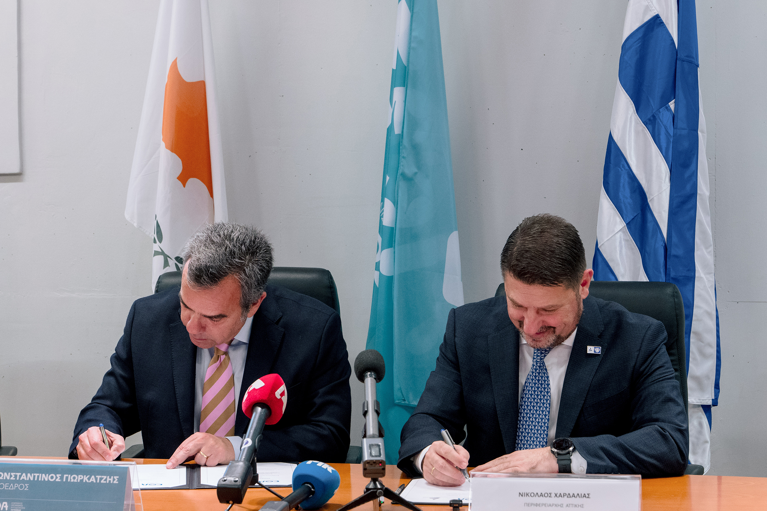 Κατά την πρώτη ημέρα της επίσκεψης, οι κ.κ. Γιωρκάτζης και Χαρδαλιάς υπέγραψαν Μνημόνιο Συνεργασίας μεταξύ του ΕΟΑ Λευκωσίας και της Περιφέρειας Αττικής το οποίο καλύπτει, μεταξύ άλλων, τους τομείς της ψηφιακής μετάβασης, της ανάπτυξης «Έξυπνων Περιφερειών», της καινοτομίας, της έρευνας και της τεχνολογίας, της δημόσιας διοίκησης, της περιβαλλοντικής προστασίας και βιώσιμης ανάπτυξης, της διαχείρισης υδάτινων πόρων και αποβλήτων, της αντιπλημμυρικής προστασίας και της αξιοποίησης ανανεώσιμων πηγών ενέργειας.