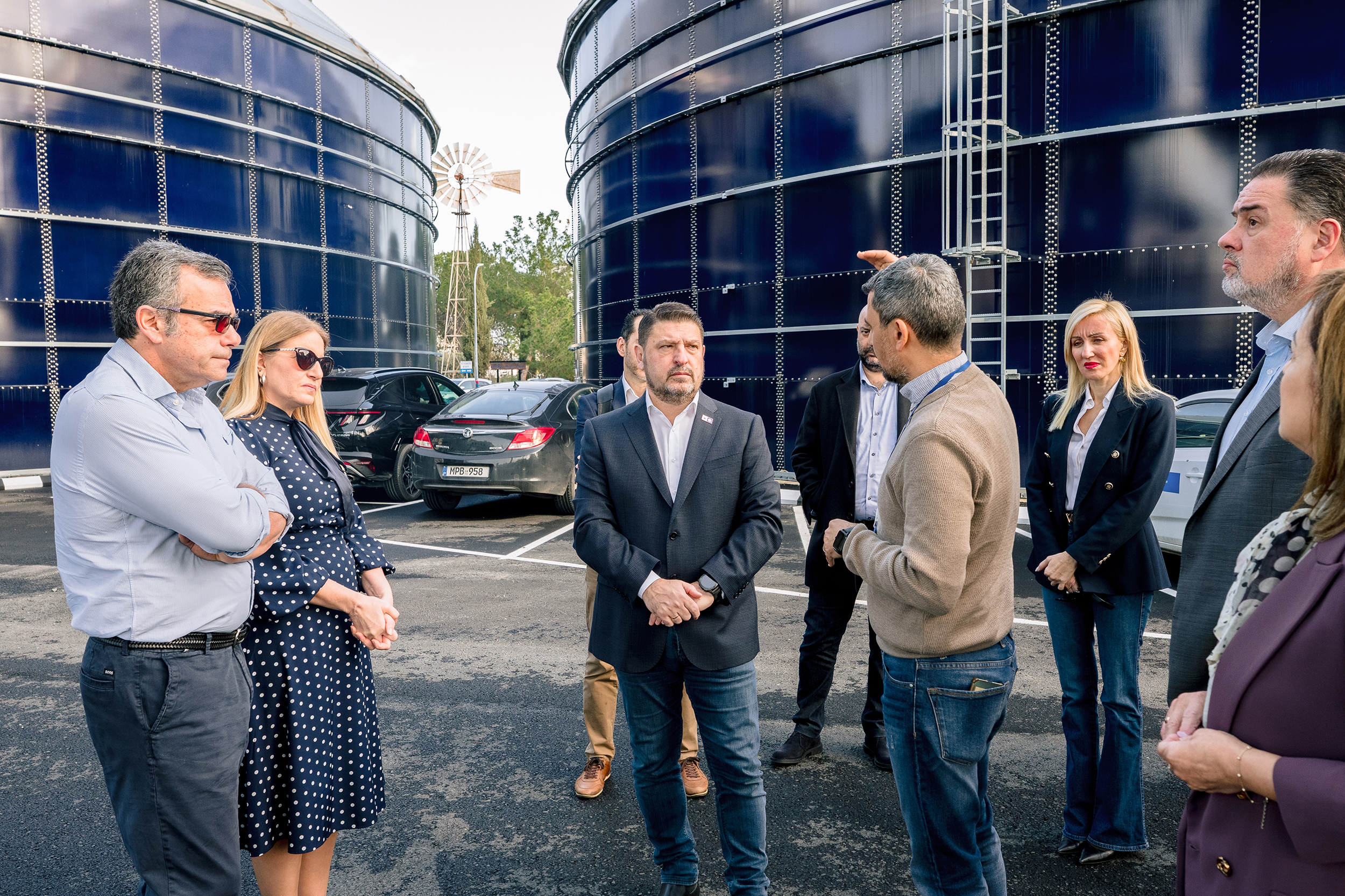 Ακολούθως, επισκέφθηκαν τις υδατοδεξαμενές GLS τρίτης γενιάς «Κλειώ» και «Ερατώ», όπου ενημερώθηκαν από τον Πρόεδρο κ. Κωνσταντίνο Γιωρκάτζη και τους υπεύθυνους υπηρεσίας της Ύδρευσης για τον καθοριστικό τους ρόλο στην ενίσχυση της υδατικής επάρκειας της Επαρχίας, με τη διασφάλιση της κάλυψης των αναγκών για περισσότερες από 36 ώρες ακόμη και σε περίπτωση διακοπής της υδροδότησης.