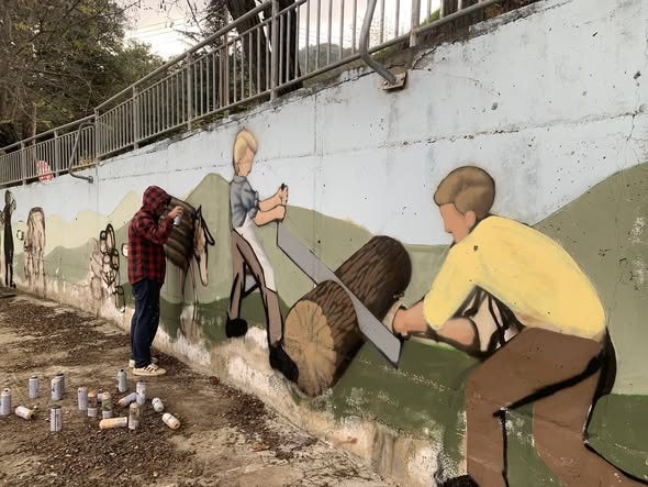 Μοντέρνα τέχνη στον Κάμπο της Τσακκίστρας, με επιχορηγημένα graffiti με σκηνές από την παράδοση του χωριού – Φωτογραφίες