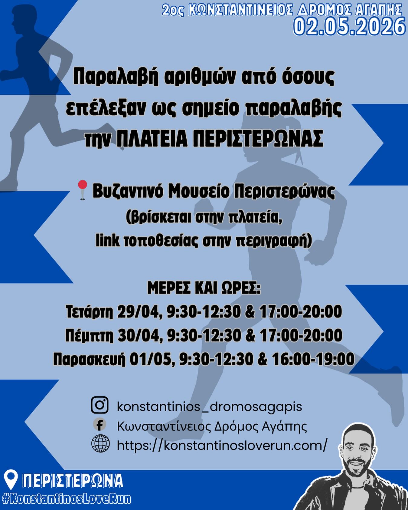 Σημαντική ενημέρωση εξέδωσε ο Κωνσταντίνειος Δρόμος Αγάπης για τους δρομείς, αναφορικά με την παραλαβή των αριθμών τους.