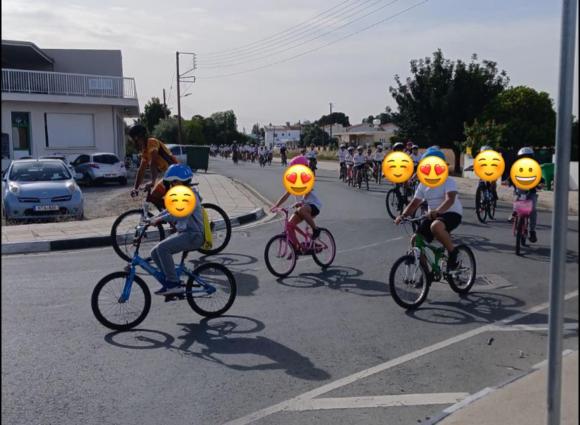 Η Μαρίνα Θεοδώρου, εθελοντες ποδηλατες της ομαδας της, η Αστυνομία Κύπρου και ο Ποδηλατικός Ομιλος Άγιος Μνάσων, γονεις και μελη του Συνδεσμου Γονέων, ο διευθυντης και δασκαλοι, συνοδευσαν τα παιδια της Δ, Ε και Στ τάξης σε μια μια ποδηλατικη διαδρομή απο το σχολειο μέχρι το εκπτωτικό χωριο και πισω στο σχολειο, με ενδιαμεσο σταθμό τα Κρατητηρια Κοκκινοτριμιθιας.