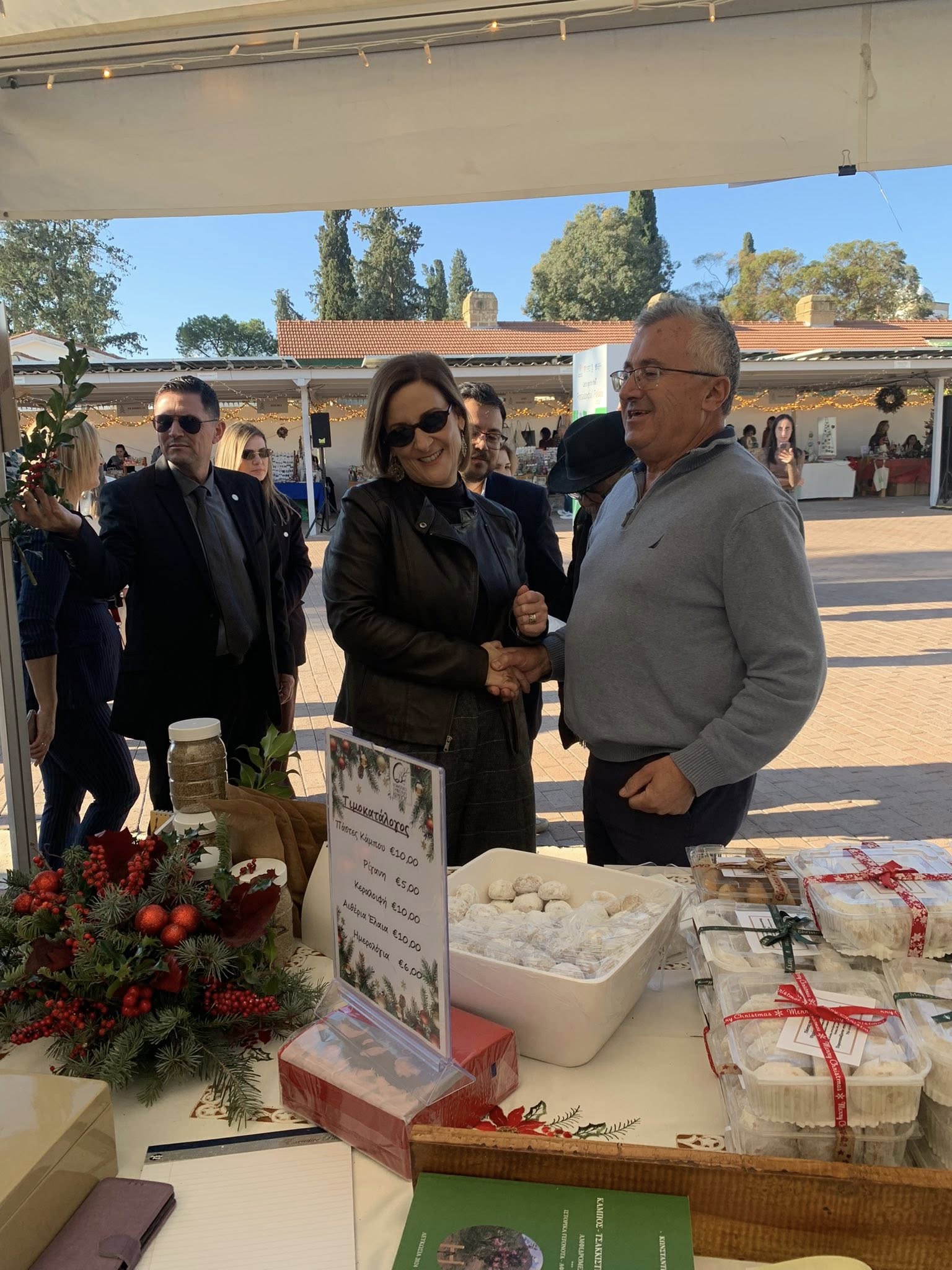 Η Πρώτη Κυρία ανάφερε ακόμα ότι φέτος στην εκδήλωση συμμετέχουν περίπου εκατό συμμετέχοντες, σημειώνοντας ότι «τους στηρίζουμε, προβάλλουμε τα προϊόντα τους και καλούμε τον κόσμο να έρθει για τις χριστουγεννιάτικες αγορές του».
