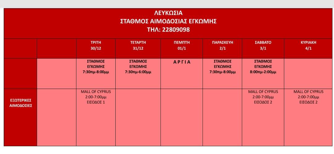 Πρόγραμμα αιμοδοσίας στη Δυτική Λευκωσία αυτή την εβδομάδα December 30, 2025 ΕπικαιρότηταΔυτική ΛευκωσίαΤοπικάΥγεία Το πρόγραμμα αιμοδοσίας γι’ αυτή την εβδομάδα ανακοινώθηκε από το Κέντρο Αίματος Κύπρου. Αυτή την εβδομάδα θα λειτουργεί και το Σάββατο, ενώ, θα πραγματοποιούνται και εξωτερικές αιμοδοσίες στο Mall of Cyprus. Δείτε αναλυτικά τον πιο κάτω πίνακα: ΗΜΕΡΟΛΟΓΙΟ ΕΚΔΗΛΩΣΕΩΝ ΤΕΛΕΥΤΑΙΕΣ ΕΝΗΜΕΡΩΣΕΙΣ Δείτε τους μισθούς όλων των Κρατικών Αξιωματούχων – Πρόεδρος, Δικαστές, Υπουργοί, Επιτρόποι, Βουλευτές κ.α. Οικονομία Περίπου στο μισό της κανονικής η βροχόπτωση αυτό το μήνα – Δείτε για Πλατάνια και Λευκωσία Δυτική Λευκωσία Νέα ενίσχυση για ΟΜΟΝΟΙΑ 29Μ που ποντάρει στην άνοδο ΑΘΛΗΤΙΚΑ ΣΧΕΤΙΚΑ ΑΡΘΡΑ Το 2025 ήταν η τρίτη θερμότερη χρονιά στα χρονικά – Έρχονται καταστροφικότερα καιρικά φαινόμενα Κόσμος Βαθιά θλίψη Καμπιτών για το θάνατο του Γιώργου Βασιλείου, αφού είχε καταγωγή το χωριό τους – Απαρίθμηση των όσων πρόσφερε Πρόσωπα Με συγχρηματοδότηση ΕΕ υποβοηθούμενες εθελούσιες επιστροφές μεταναστών Κοινωνία Previous articleΗρεμία σήμερα στο Μάμμαρι – Ζητά ενημέρωση από Υπ. Εξωτερικών ο Κοινοτάρχης ΜάμμαριNext articleΔΥΤ. ΛΕΥΚΩΣΙΑ: Συνελήφθη 19χρονος που φέρεται να κτύπησε βαριά 85χρονο στο σπίτι του και να τον λήστεψε – Η κατάσταση υγείας του παππού