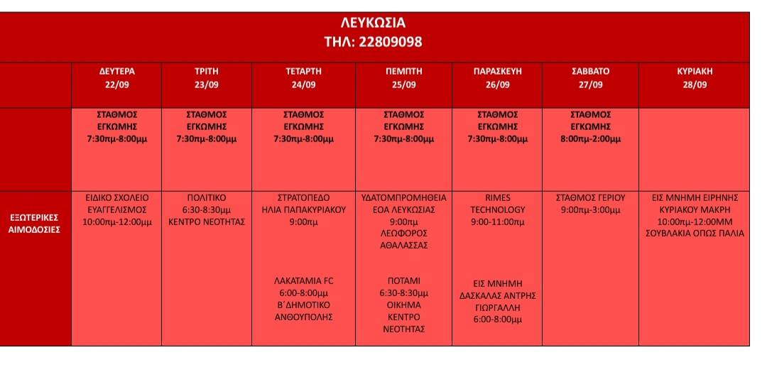 Ανακοινώθηκε το εβδομαδιαίο πρόγραμμα αιμοδοσιών στη Λευκωσία, από το Κέντρο Αίματος Κύπρου/Αιμοδοσία-Cyprus Blood Establishment/Blood Donation.