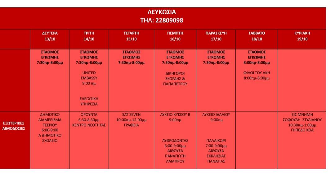 Το πρόγραμμα αναρτάται από το Κέντρο Αίματος Κύπρου/Αιμοδοσία-Cyprus Blood Establishment/Blood Donation.