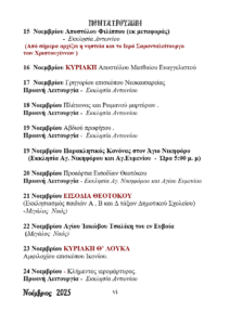 Ι.Ν. Αγ. Βαρνάβα και Ιλαρίωνος Περιστερώνας – Πρόγραμμα Ακολουθιών Νοεμβρίου