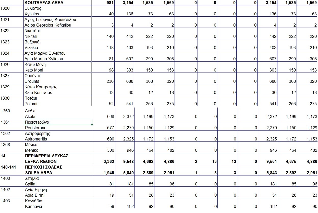 Το μεγαλύτερο πρόβλημα φαίνεται να καταγράφεται στα χωριά Ορούντα, Αγία Μαρίνα Ξυλιάτου, Βυζακιά, Αγία Ειρήνη, Καννάβια και Ξυλιάτο, με τον Αστρομερίτη και την Κάτω Μονή να σημειώνουν όχι τόσο σημαντική μείωση. Ενδεικτικά, σε σχέση με την απογραφή του 2001, η Αγία Ειρήνη καταγράφει τη μεγαλύτερη μείωση, χάνοντας το 39% των κατοίκων της, τα Κανάβια το 29%, η Ορούντα το 23%, η Αγία Μαρίνα το 22% και η Βυζακιά το 12%.