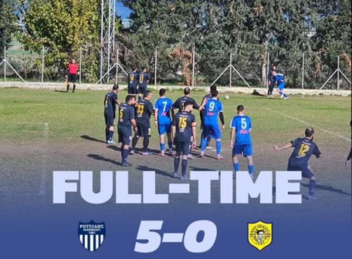 Ο Ροτσίδης πέτυχε δύο γκολ στα πρώτα οκτώ λεπτά και τελείωσε το 1ο ημίχρονο με σκορ 3 -0. Ακολούθως, συνεχισε την καλή απόδοση πετυχαίνοντας ακόμη 2 γκολ. Η ομάδα από το Μάμμαρι έχει ήδη 40 βαθμούς.