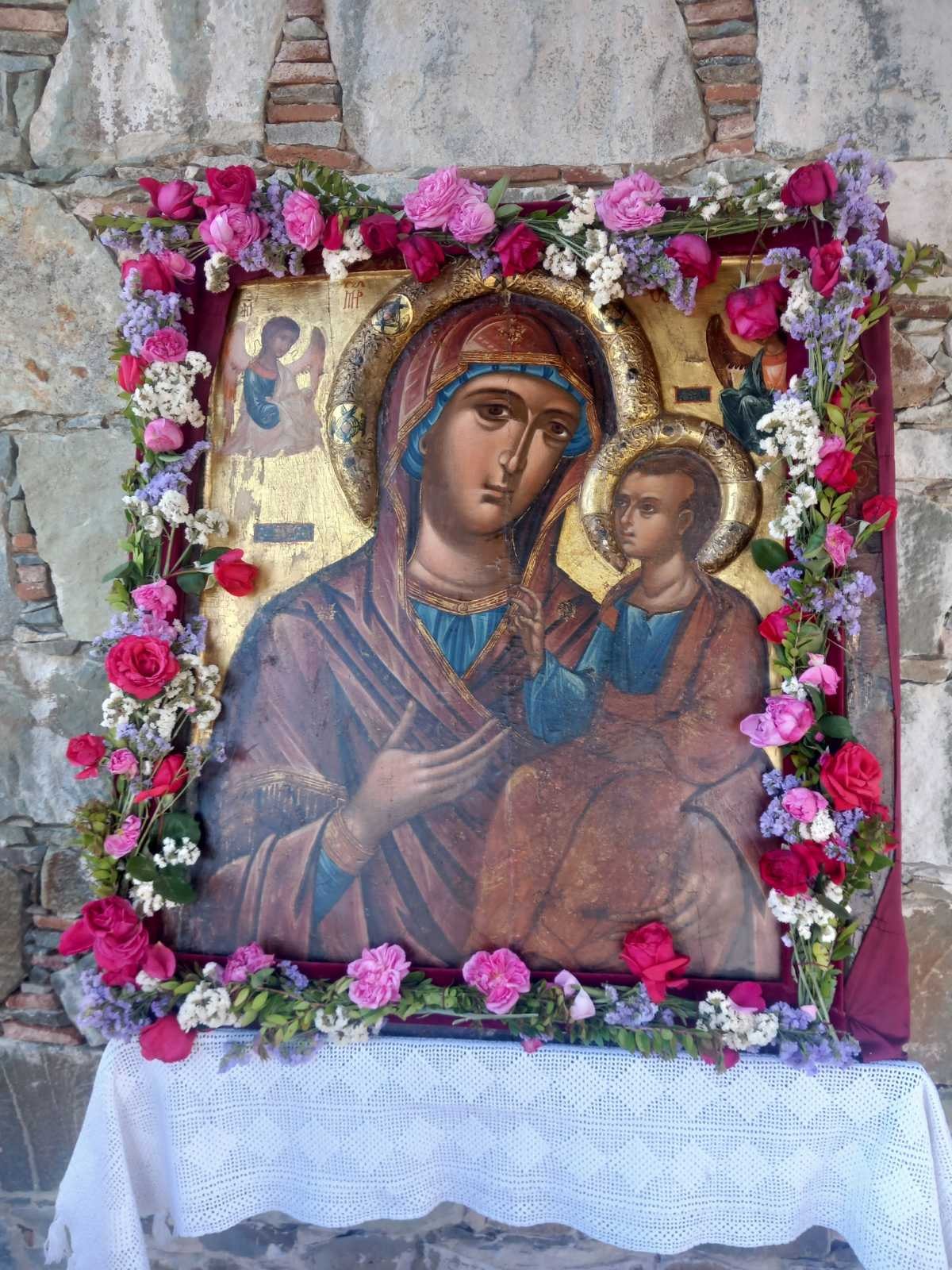 Όσον αφορά στην εικόνα της Παναγίας της Αγνιώτισσας, γνωρίζουμε από γέροντες του χωριού ότι πριν από 150 περίπου χρόνια, κάποιος κάτοικος του χωριού που είχε κτήμα στην περιοχή, στην προσπάθεια του να φυτέψει αμπέλι, βρήκε την εικόνα της Παναγίας θαμμένη. Έκτοτε βρίσκεται στην εκκλησία του χωριού όπου και φυλάσσεται μέχρι σήμερα. Η εικόνα της Παναγίας της Άγνης είναι θαυματουργός, και η εκκλησία λειτουργείται κάθε Τρίτη του Πάσχα, συγκεντρώνοντας πολλούς πιστούς από τις γύρω περιοχές και όχι μόνο”.
